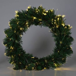 Kerstkrans met Verlichting - Fiber Optic - 50 cm - Warm Wit - op Batterijen