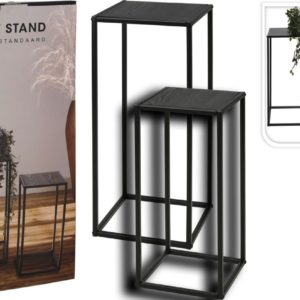Plantenstandaard – 46 + 58 cm hoogte – zwart – set van 2