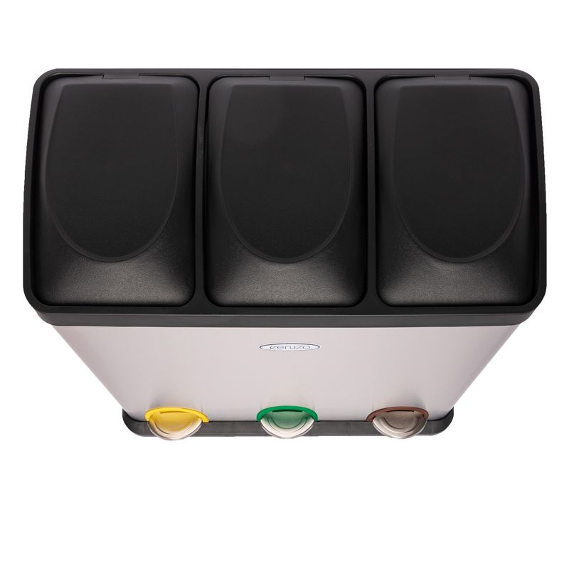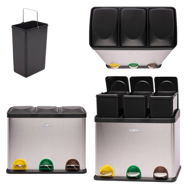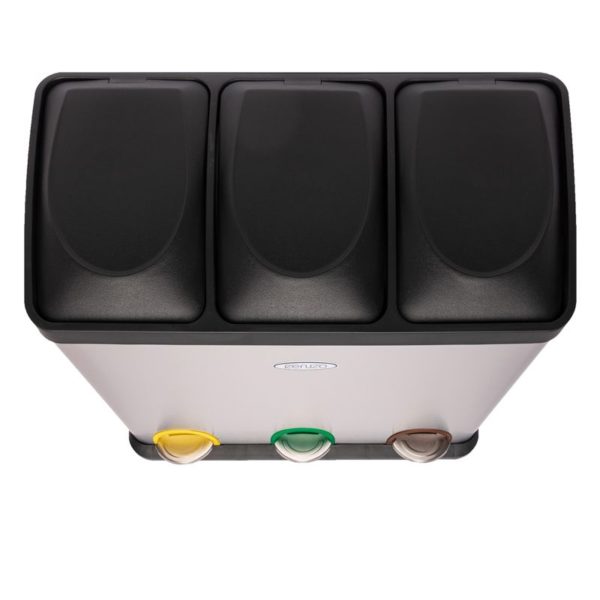 Deze pedaalemmer met een inhoud van 45 liter is ideaal voor het scheiden van je afval. De trio-afvalemmer van Ceruzo heeft 3 afzonderlijke compartimenten van elk 15 liter, in elk compartiment zit een kunststof binnenemmer. De deksels zijn afzonderlijk te openen met de voetpedalen, dus zeker hygiënisch! Daarnaast is hij makkelijk te verplaatsen door de metalen handgreep aan de achterzijde.
