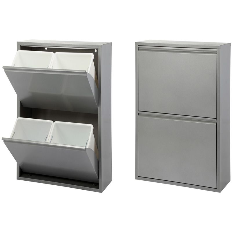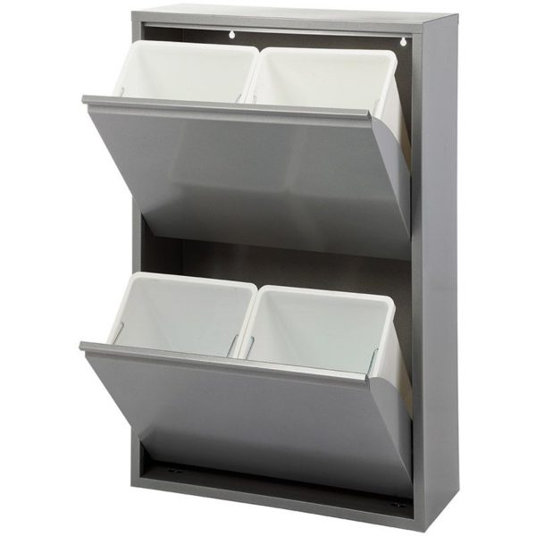 Deze Duett prullenbak is perfect voor het scheiden van je afval. Binnen in deze stevige metalen afvalscheidingprullenbak (60 x 25 x 92 cm) zitten twee uitneembare emmers, die je optilt aan het handvat. De emmers zijn hierdoor goed te legen en te reinigen. De recyclebak kan los staan, maar je kan er ook voor kiezen om ze op te hangen aan de muur. De Duett opbergbox kan ook voor andere doeleinden worden gebruikt, zoals het opbergen van speelgoed.