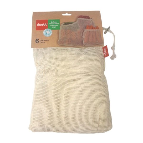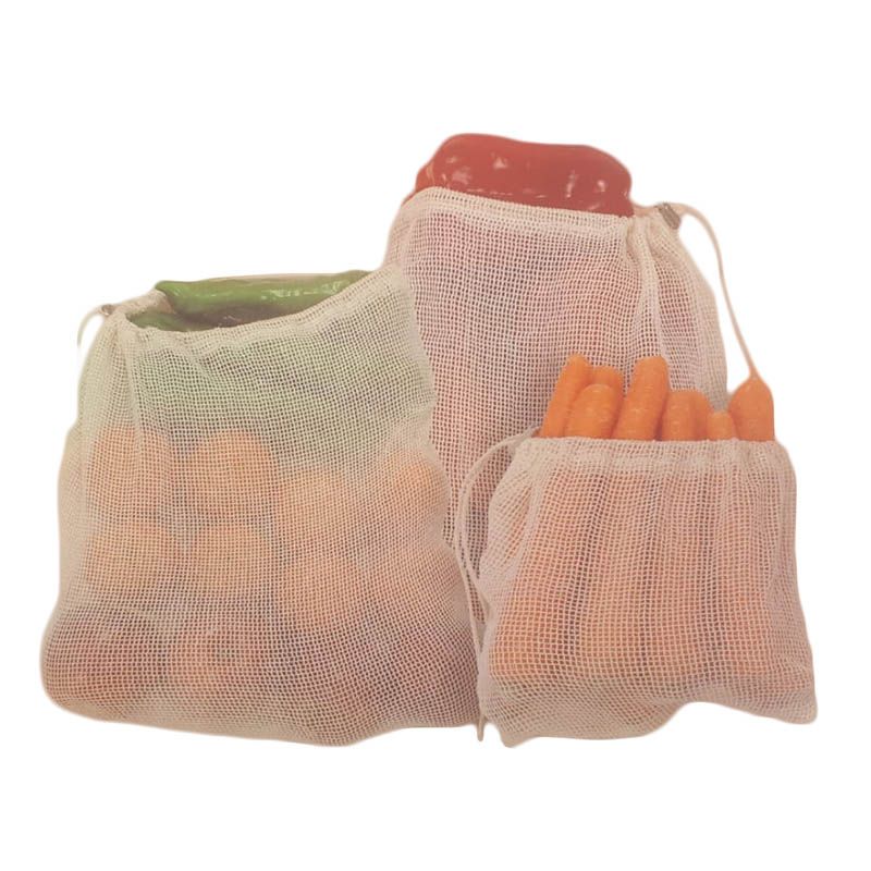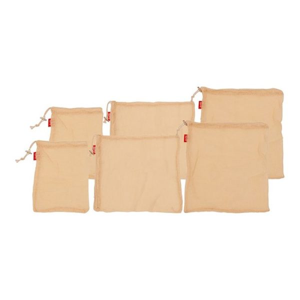 Herbruikbare groente- en fruitnetjes om boodschappen mee te doen. Neem ze mee naar de markt, de groenteboer, de supermarkt of naar de bakker. Deze bulkzakjes zijn een perfect alternatief voor de plastic tasjes in de supermarkt. De set bestaat uit 6 zakjes in 3 verschillende maten. Elk zakje kan gesloten worden met het trekkoordje, dankzij het clipje blijft de tas ook goed dicht. Na gebruik kan je de netjes wassen en herbruiken.