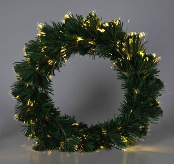 Kerstkrans met Verlichting – Fiber Optic – 50 cm – Warm Wit – op Batterijen