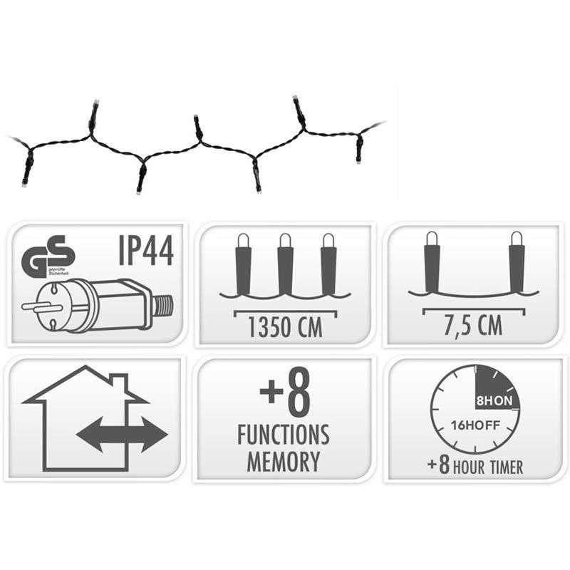 Kerstverlichting 180 led- 13.5m – extra warm wit – Timer – Lichtfuncties – Geheugen – Buiten
