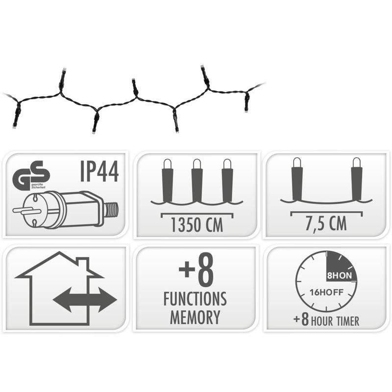 LED Lichtsnoer van 13.5 meter met 180 lampjes, voor binnen en buiten