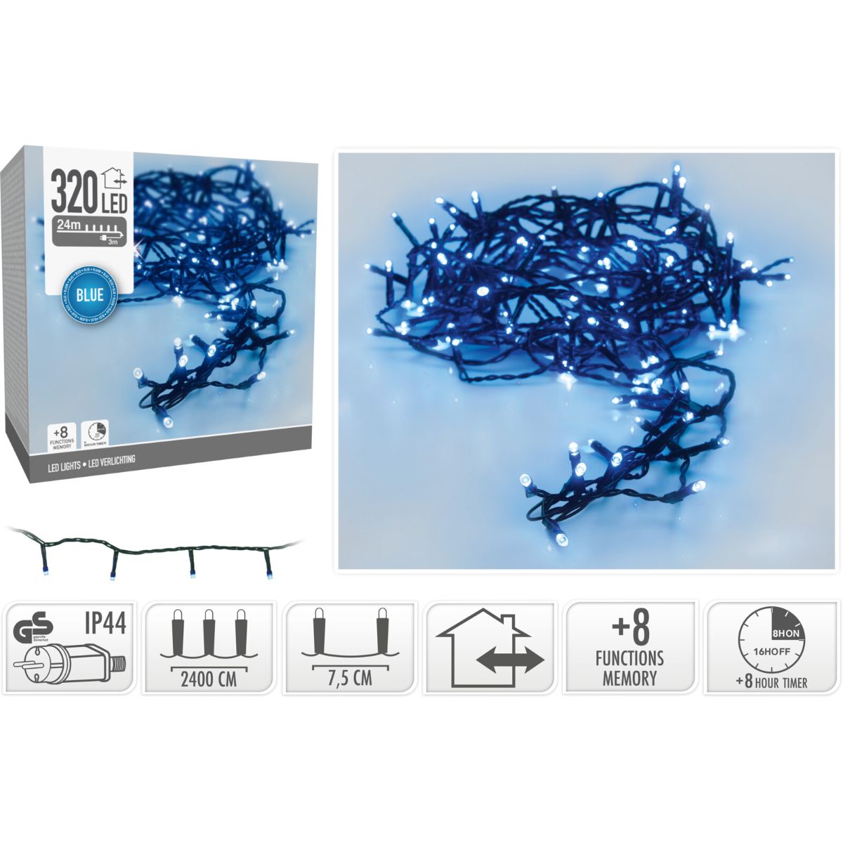 LED Lichtsnoer van 24 meter met 320 lampjes, voor binnen en buiten