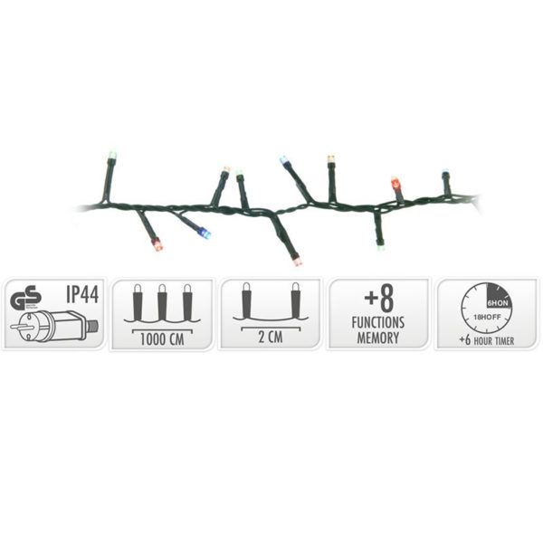 Kerstverlichting met 500 led’s en een lengte van 10 meter. Extra handig zijn de 8 lichtfuncties, de geheugenfunctie, timerfunctie en de meegeleverde spool om de lampjes omheen te wikkelen wanneer je ze op wil bergen.