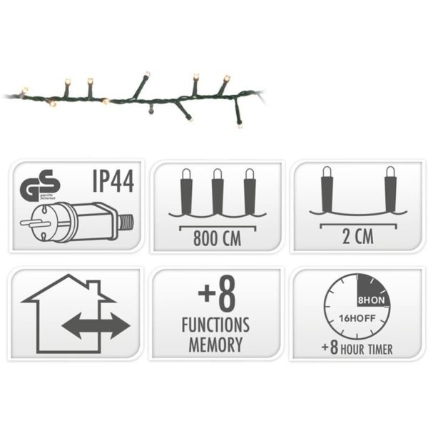 Microcluster – 400 led – 8m – warm wit – Timer – Lichtfuncties – Geheugen – Buiten