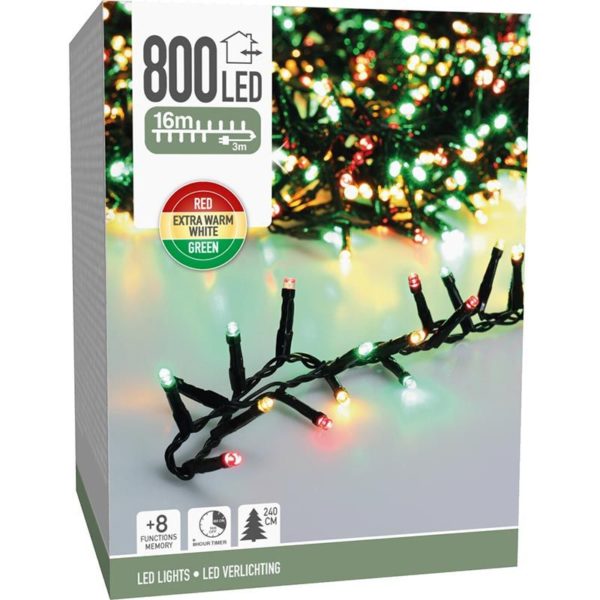 Kerstverlichting van 16 meter met 800 LED lampjes, geschikt voor een kerstboom van 240 cm, voor binnen en buiten gebruik