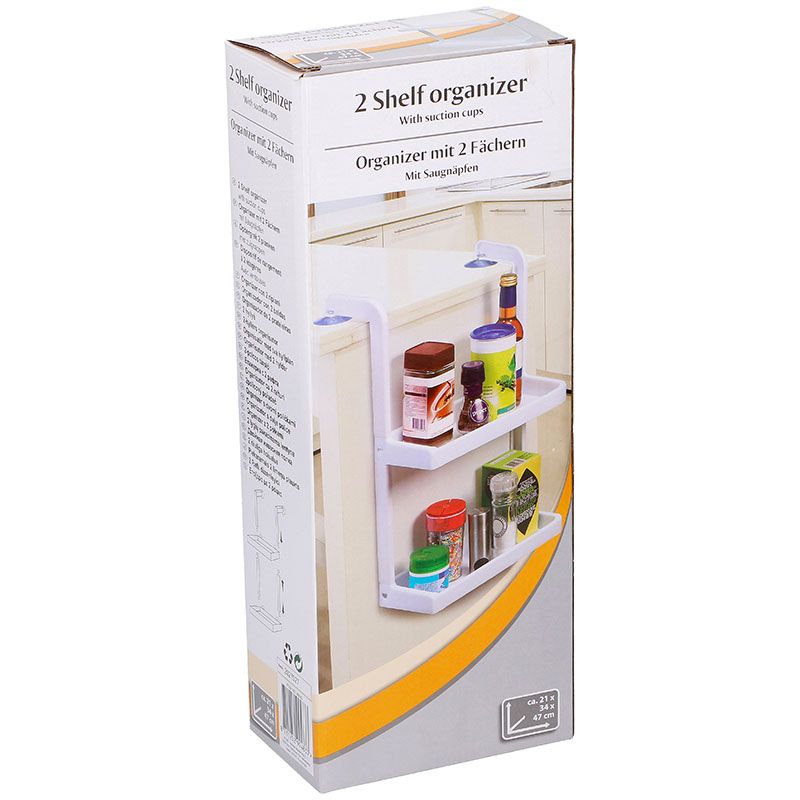 - Een praktisch opbergrekje om met zuignappen te bevestigen aan bv het aanrechtblad of aan een tafel