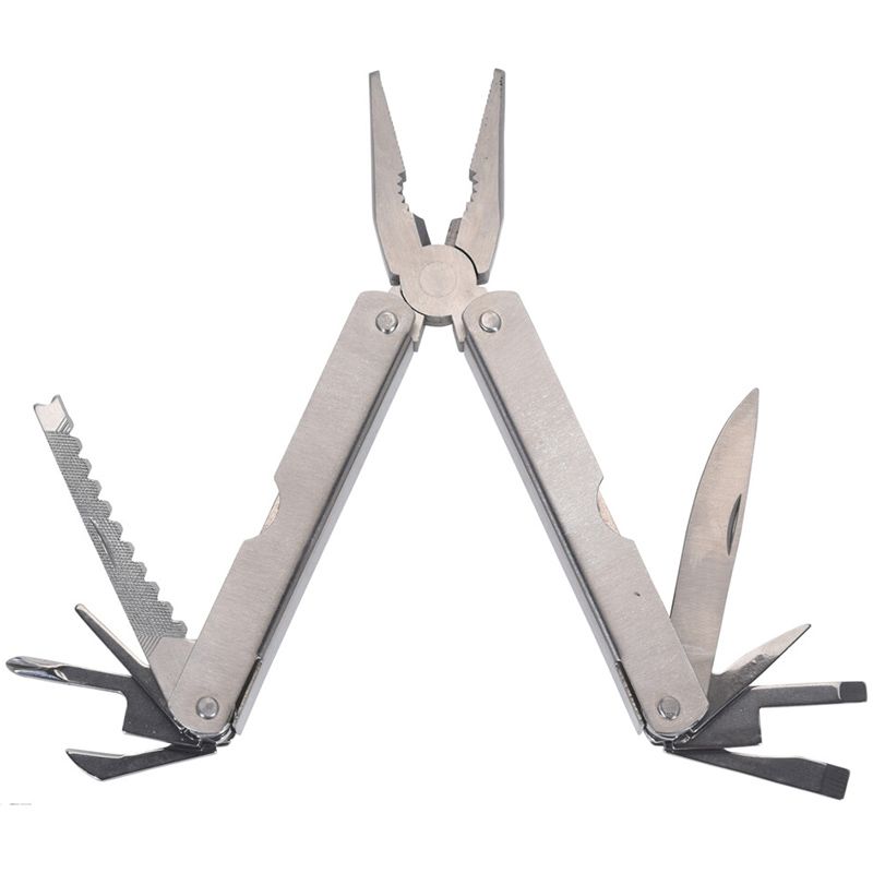 • handige outdoor-tool met 15 functies waaronder een zakmes, schroevendraaier, tang, flessenopener