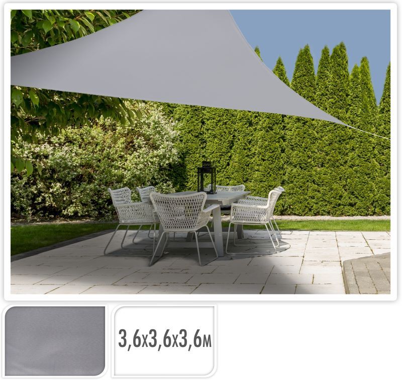 Bescherm jezelf tegen direct zonlicht met dit hoogwaardige zonnedoek van 3.6 x 3.6 x 3.6 meter. Ideaal voor tuin, terras of speeltuin.
