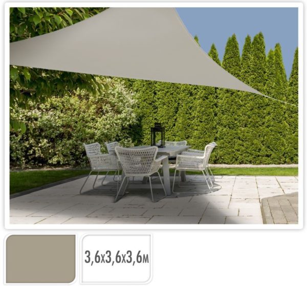 Bescherm jezelf tegen direct zonlicht met dit hoogwaardige zonnedoek van 3.6 x 3.6 x 3.6 meter. Ideaal voor tuin, terras of speeltuin.