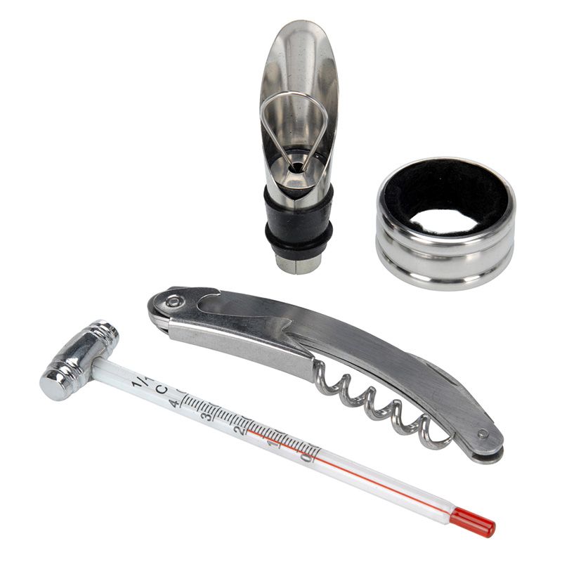 Wijnaccessoires set in blikken doos 5 delig