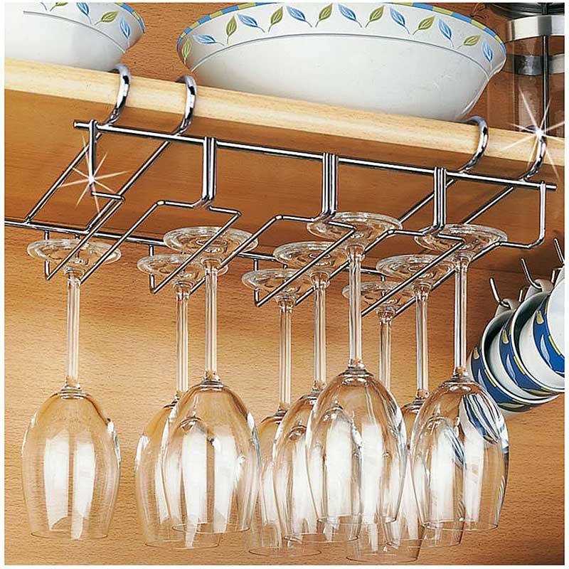 - Bevestig dit rek onder het keukenkastje en u kunt er 12 wijnglazen in ophangen